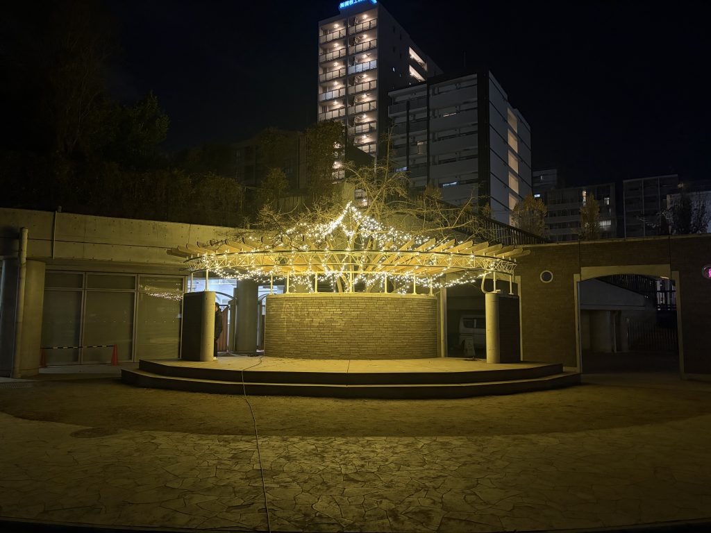 2025年12月 大阪の江坂公園にて、プロジェクションマッピング・イルミネーションを行いました。担当業務:映像制作・プロジェクターの設置・調整使用機材: プロジェクター EB-PU2213B・ARENA