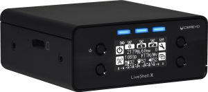 ・本体サイズ W:102 mm × D:100 mm x H:42 mm ・重量 内蔵バッテリなし380g、内蔵バッテリ装着で480g ・ライブ配信最大解像度 1080/60p(1配信時または1録画時のみ) ・ビットレート 100kbps ∼ 20Mbps